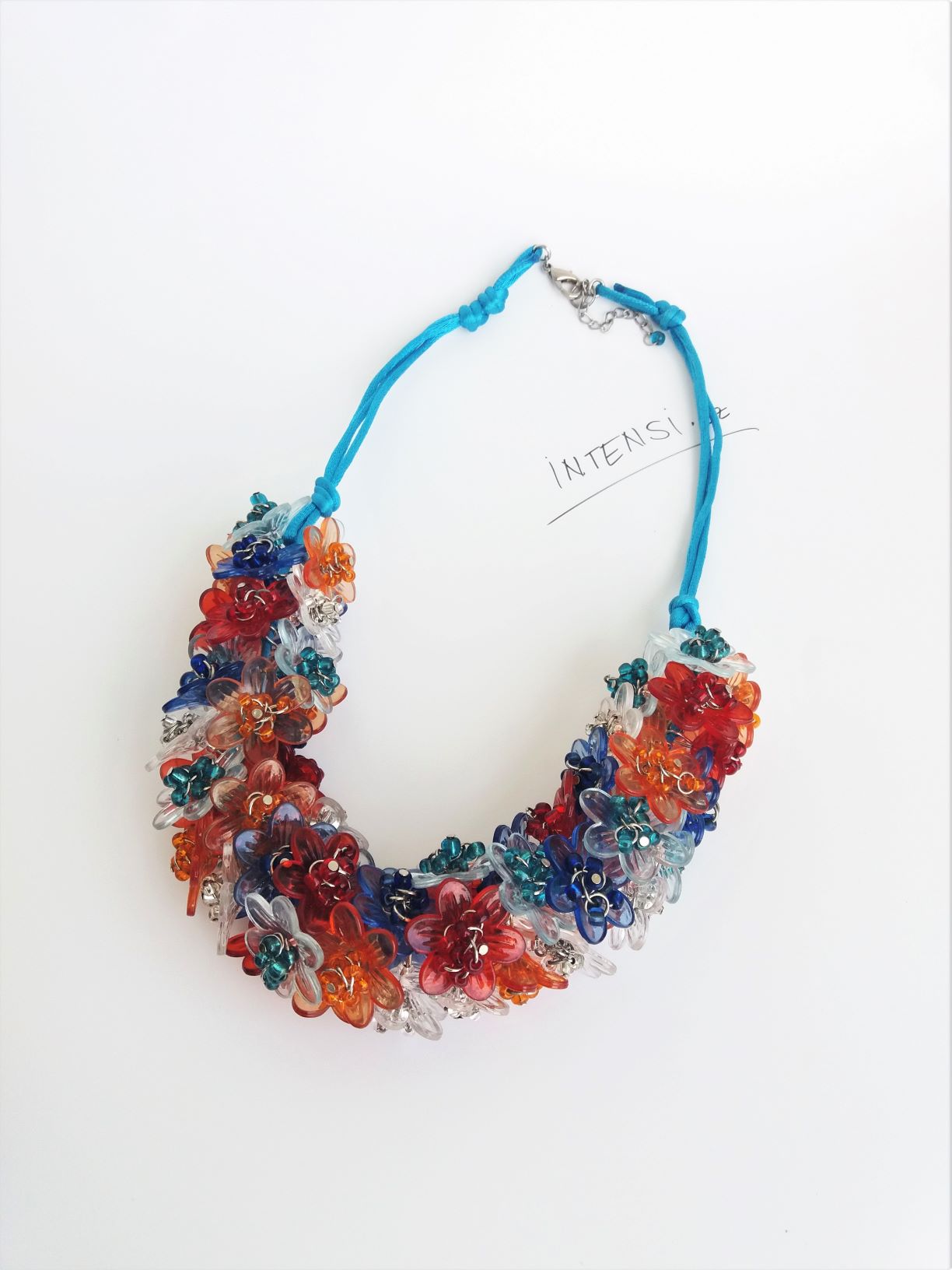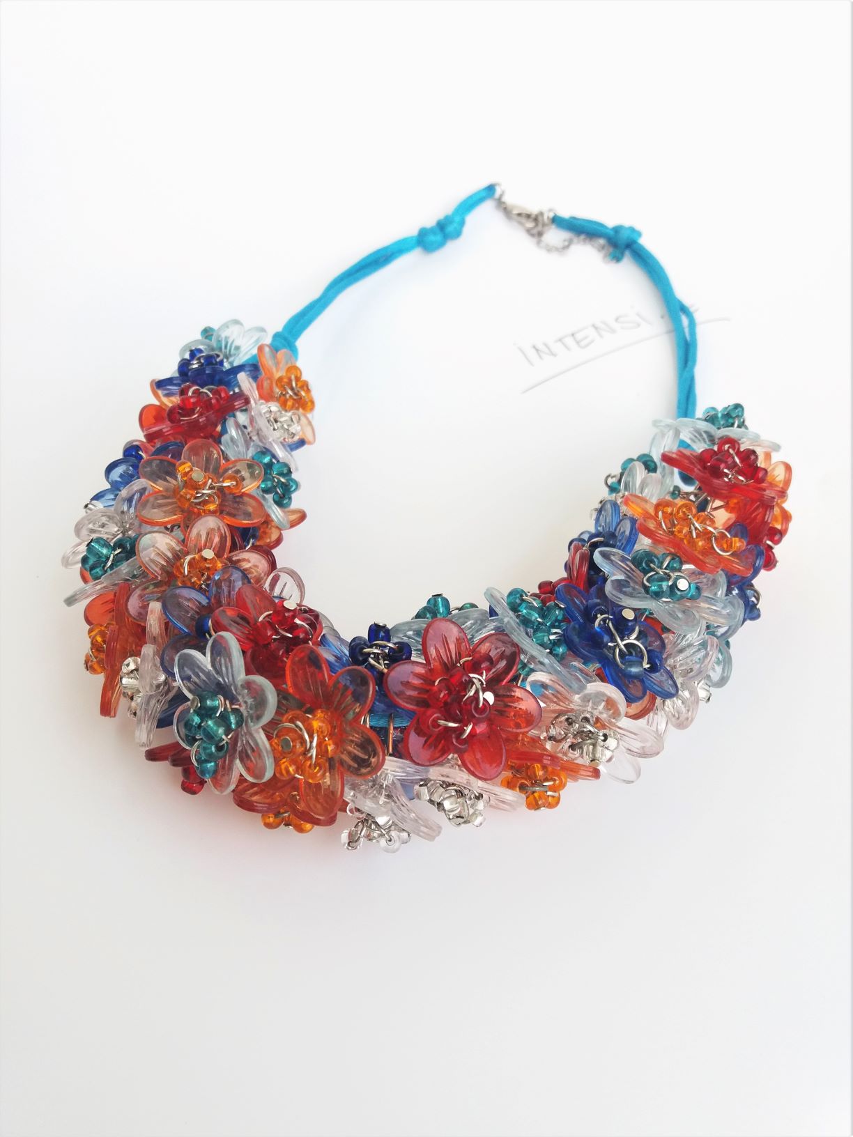 Autorská minisérie " Kytkovaná " - vyroben jeden až dva kusy od barvy.Materiál: plast, kov, skleněné korálky, saténová šňůraDélka: 56 cm + 5 cm prodlužovací řetízekHmotnost: 120 g