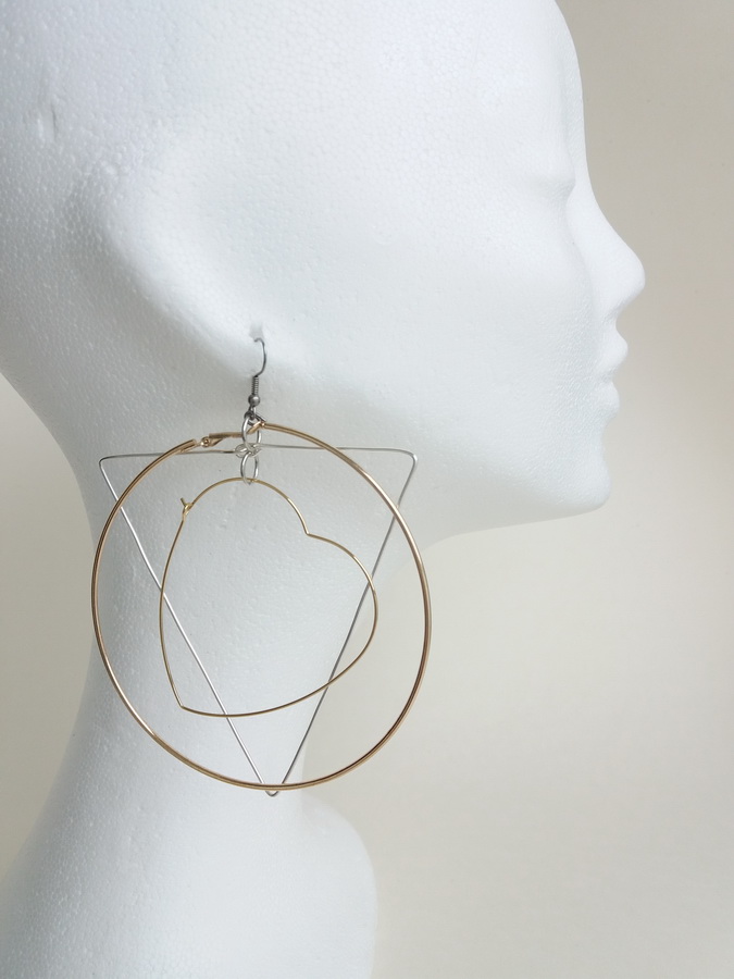 Náušnice vycházejí z tradičního tvaru kruhu, který jsme doplnili o trojúhelník a motiv srdce. Náušnice se skvěle kombinují s různými outfity.