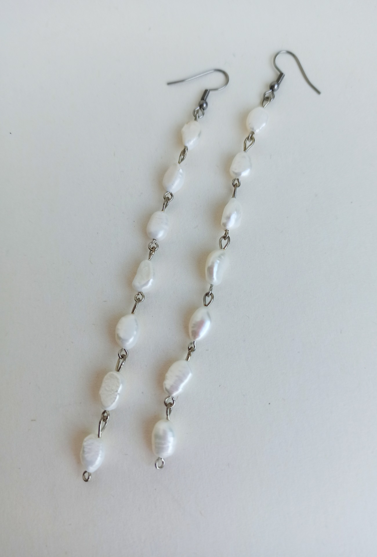Materiál: bílé říční perle cca 1 cm, chirurgická ocel